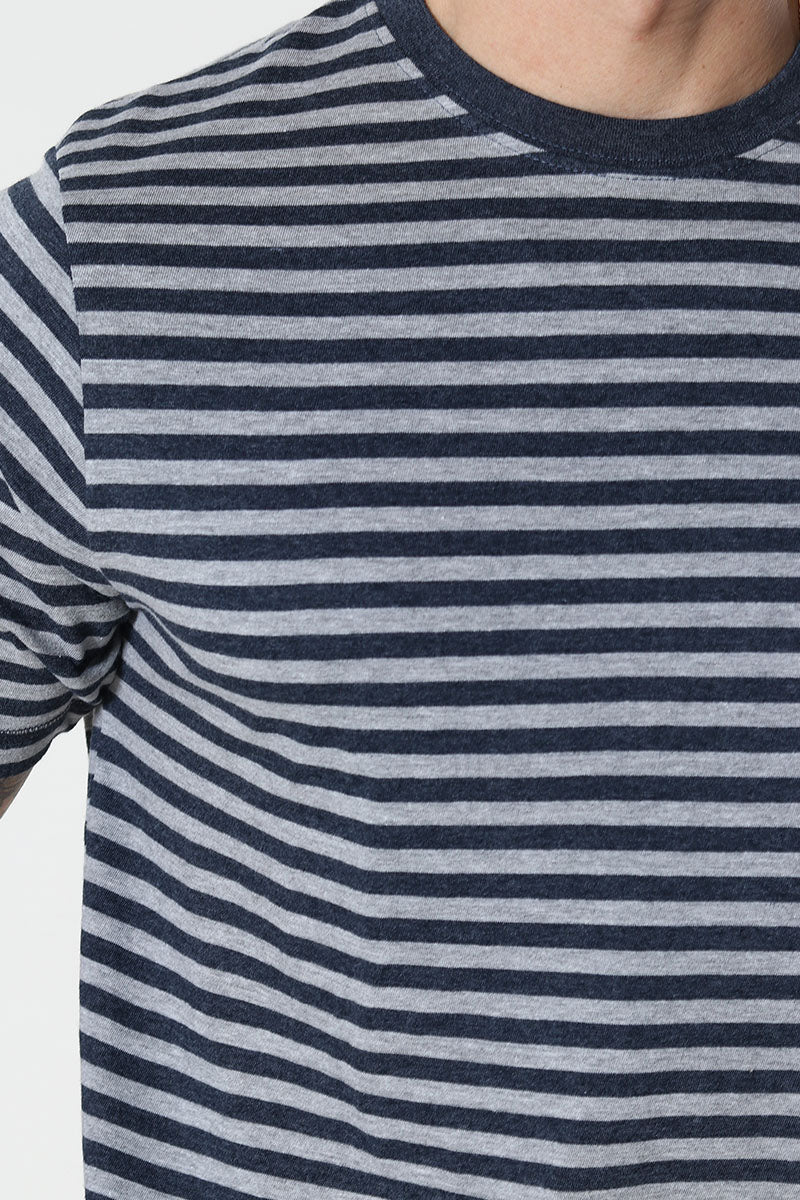 Basic Brand T-shirt Striped Oxford Grey/Heather Blue