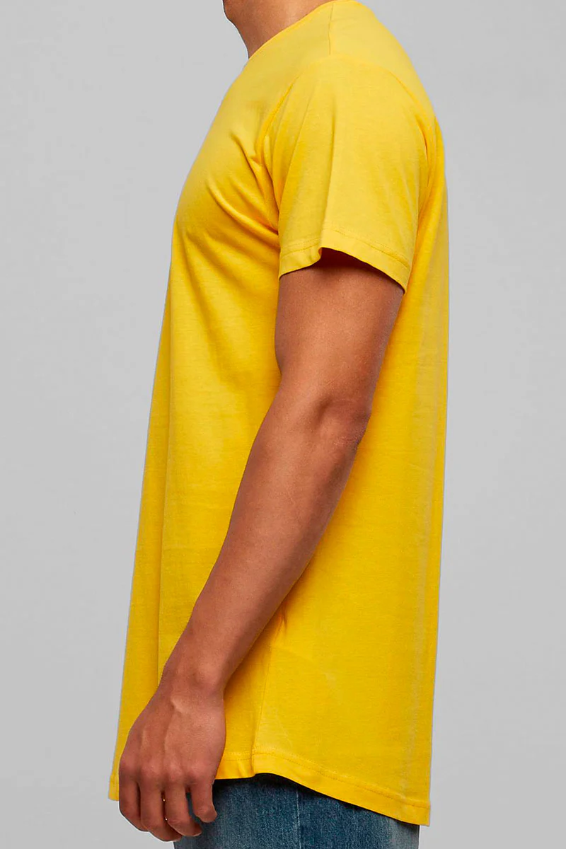 T-shirt fra Urban Classics. Kommer her i farven gul. T-shirten har en lang pasform. Ved bunden er der en rundafskæring. Klassisk o-neck med en smal ribkant. Kvalitet: 100% bomuld.