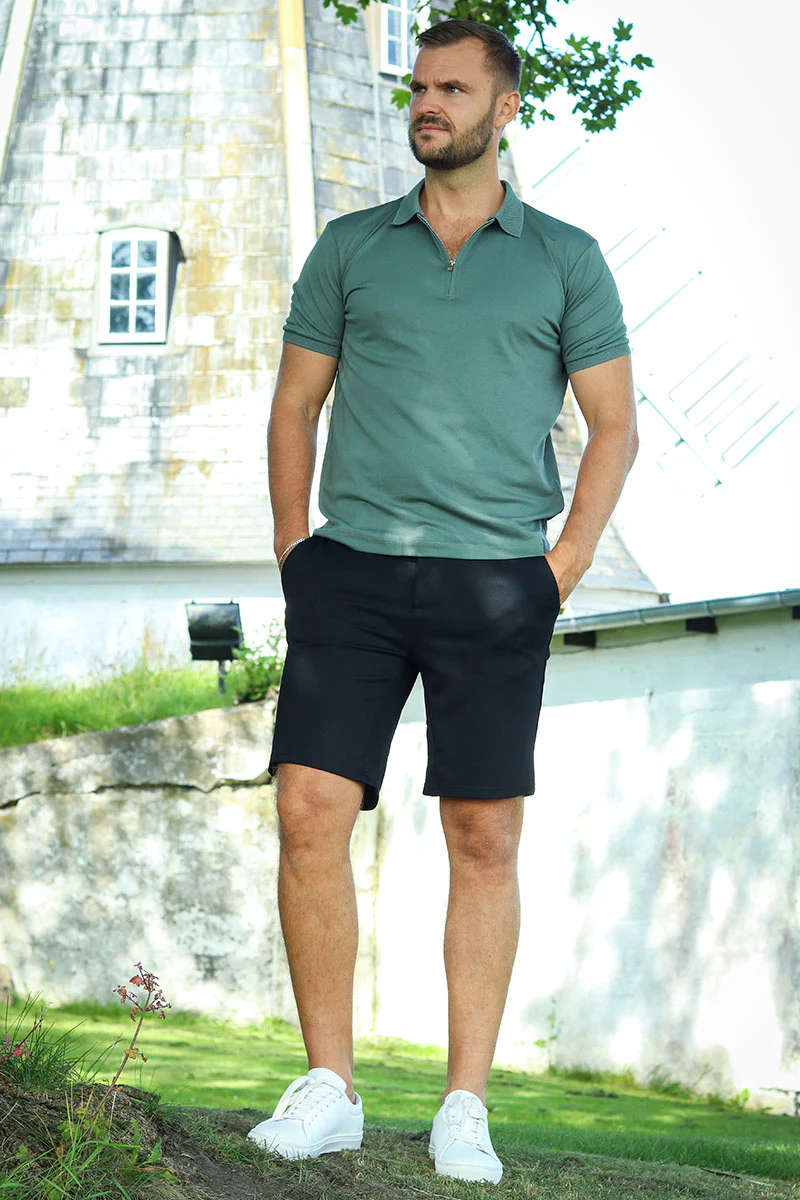 Only & Sons Mark shorts i farven black. Fede shorts i et super komfortabel materiale med stretch. Shortsene lukkes med knap og lynlås, og har et lille logo badge ved venstre forlomme. Kommer med fire lommer, hvoraf baglommerne er med knap. Kvalitet: 64% Viskose, 31% Polyester, 5% Elastan.