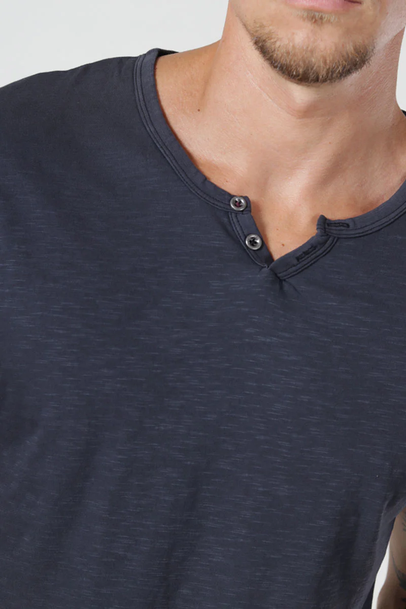 Jack & Jones Jjesplit Neck T-shirt Ss i farven Black. Lækker t-shirt i et washed look med knapper i halsen. Kvalitet: 100% Bomuld.