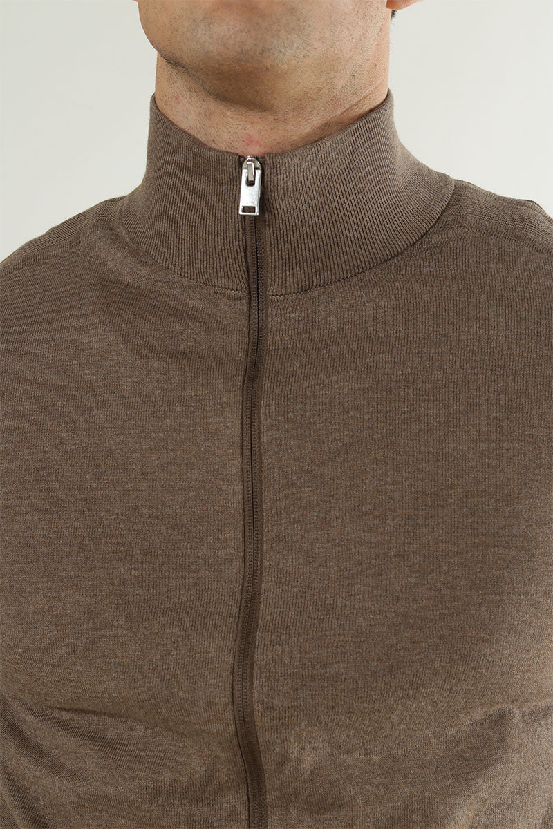 Selected BERG FULL ZIP CARDIGAN Teak Melange